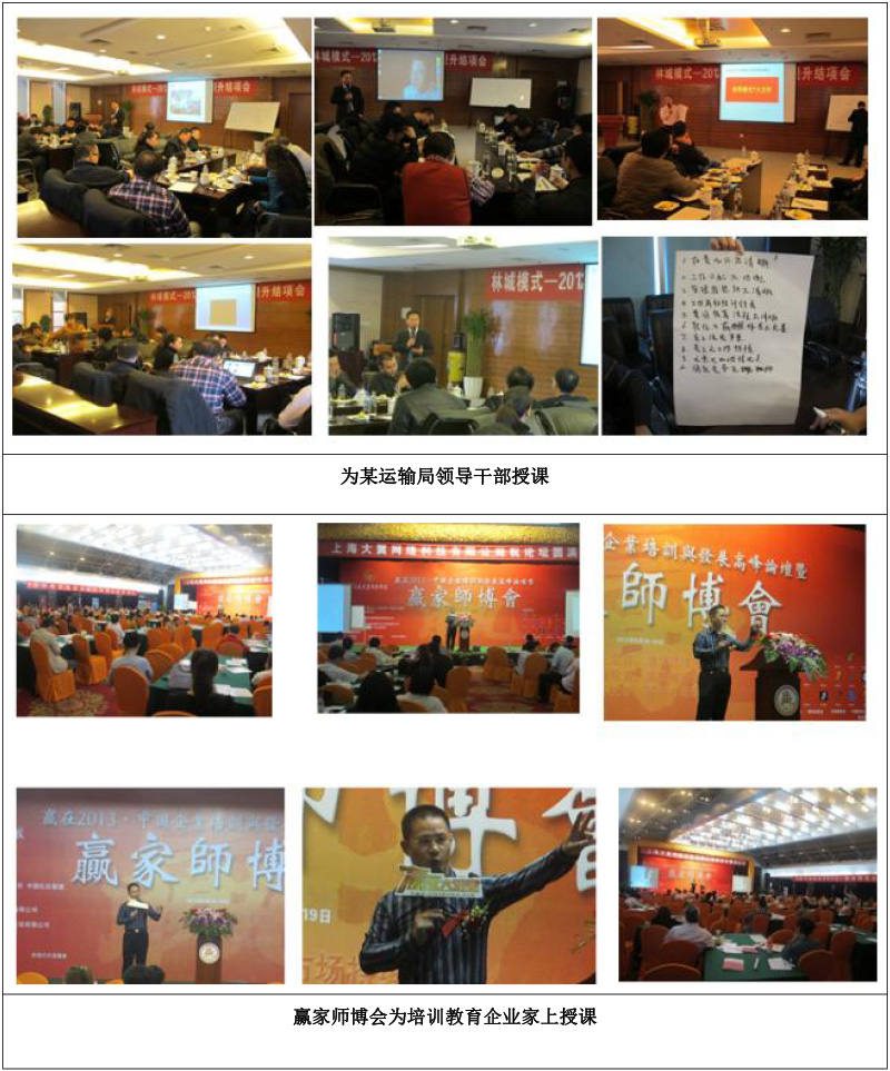 管理課程系列:《領(lǐng)導(dǎo)執(zhí)行力與變革管理》《跨部門溝通》 《商務(wù)談判》《契約化管理 》《總裁商業(yè)領(lǐng)袖》《總裁商業(yè)營銷學(xué)》《問題分析與解決》 《職業(yè)心態(tài)和素養(yǎng)》《公眾演說魅力》《專業(yè)談判策略與技巧》《創(chuàng)新思維》《企業(yè)商業(yè)模式創(chuàng)新》
